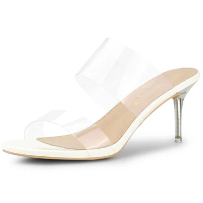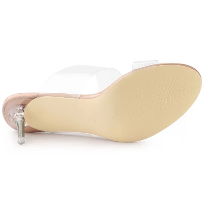 - Clear Heel Slide Sandasl, Stiletto Heel, Open Toe, Slip On