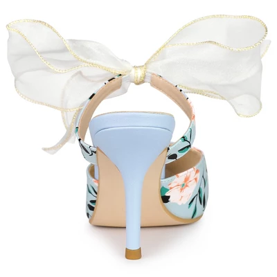 - Pointed Toe, Floral Printed, Lace Strap, Stiletto Heel