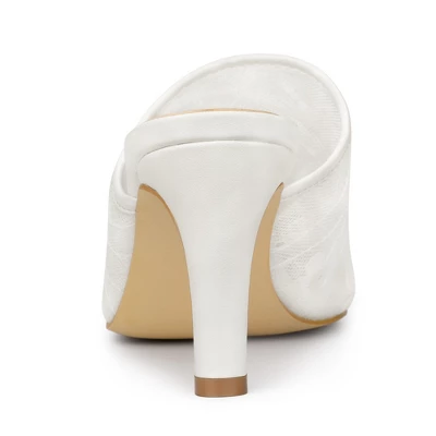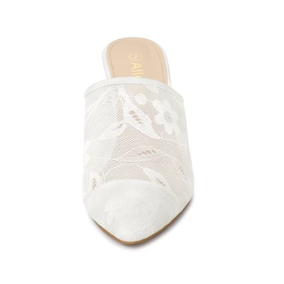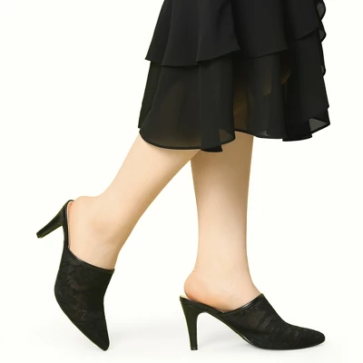 Allegra K Women’s Lace Heels Sandals Mesh Floral Embroidered Stiletto Heels Slide Mules