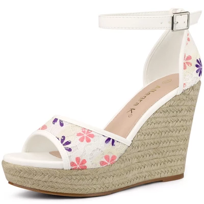 - Lace, Ankle Strap, Open Toe, Platform, Espadrilles Wedge
