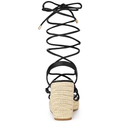 Allegra K Women’s Lace Up Platform Heel Espadrilles Wedge Sandals