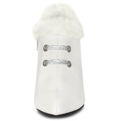 - Vamp: Faux Leather, Faux Fur; Outsole: Rubber; Heel: ABS