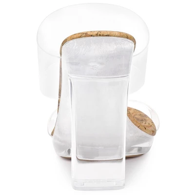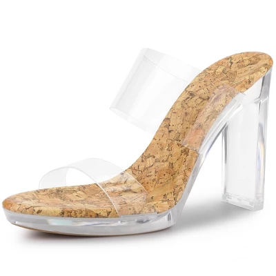 - Dual Strap, Clear Heel, Open Toe, Slide Sandals, Slip On