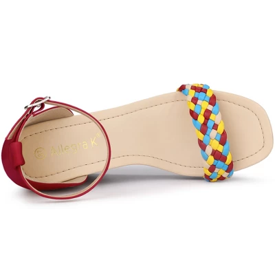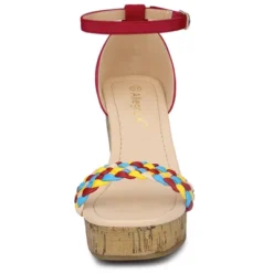 - Platform Wedge Sandals, Open Toe, Buckle, Ankle Strap, Contrast Color