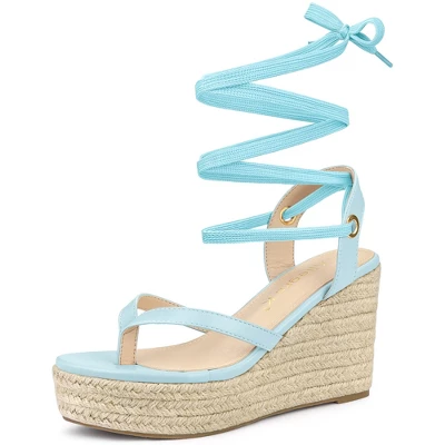 Allegra K Women’s Platform Strappy Lace-up Flip Flops Wedge Sandals