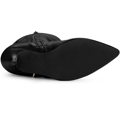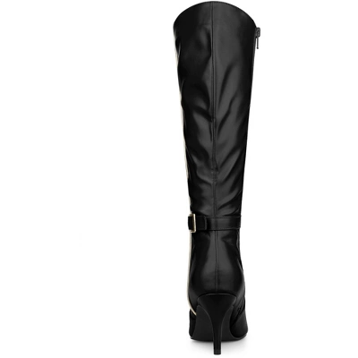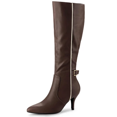 These knee-high boots set on a lofty stiletto heel serve as an impeccable standby style and allow the toes to move comfortably. You can pair these knee-high boots with your favorite dress or jeans. Buckle Decor Knee High Boots; Stiletto Heel; Side Zip; Vamp: PU; Outsole: Rubber; Heel: ABS; Heel Height: 3 1/7 inches; Shaft Height: 15 inches.