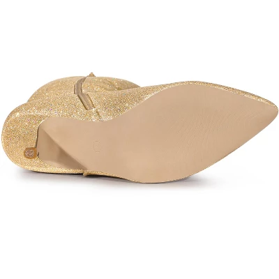 - Glitter Knee High Boots, Stiletto Heels, Side Zipper