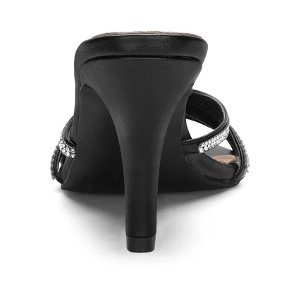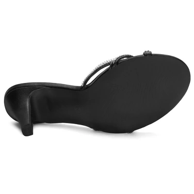 These slip-on sandals feature a trio of slim straps embellished with rhinestones, and a stiletto heel, which adds a chic touch to your favorite look. The open-toe design of high breathability as well as beauty, allows you to show your pedicure at the same time. The rhinestone decor keeps your look trendy and elegant. Wear them with jeans, trousers, dresses, shorts & denim. A variety of colors are available. These heels are suitable for daily casual, dating, and work.