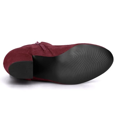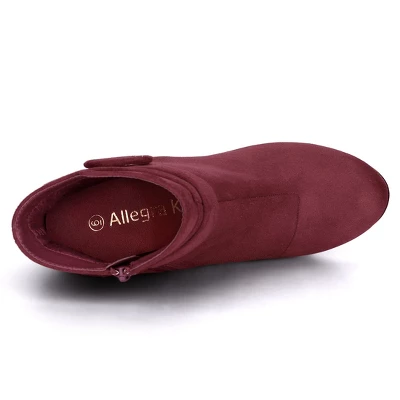 This boot features a blocked heel, ankle strap decor, a side zipper for easy on and off, and rounded toe design. These shoes can be worn on a special occasion or a date. A variety of colors are available and please note that color may vary slightly according to monitor settings.