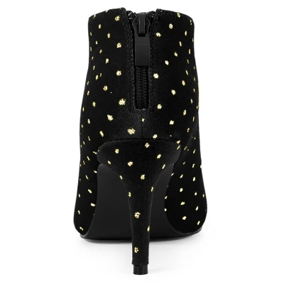 Step back in retro times with these shiny deep v-shaped ankle boots. With a pointed toe, and a stiletto heel, they are the perfect addition to your footwear collection. Pair them with skinny jeans or a mid-length skirt for an ultra-chic look. They are perfect for parties, working, shopping, and dating.