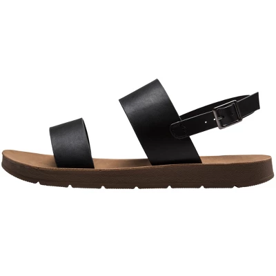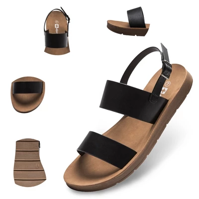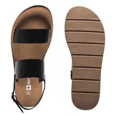 Beth Flat Sandals By Alpine SwissProduct Features: Faux Leather Upper, PU Outsole STYLISH – The Alpine Swiss Beth womens double strap sandals are the perfect sandals to pair with any warm weather outfit! CASUAL – These faux leather sandals feature a simple and classic two strap design with a buckle strap that is versatile and easy to dress up or down. COMFORTABLE – These flat sandals had a PU sole that is ergonomically shaped to your feet and 3/4” thick, making them much more comfortable than most sandals with a very thin outsole. ADJUSTABLE – The buckle strap is adjustable for a personalized and secure fit. FIT – Ideal for medium width feet, only full sizes available. If you are in between sizes, we suggest sizing up. MSRP $37.50