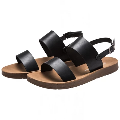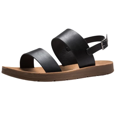 - CASUAL – These faux leather sandals feature a simple and classic two strap design with a buckle strap that is versatile and easy to dress up or down.