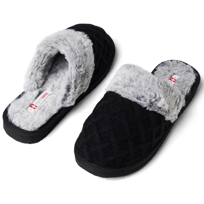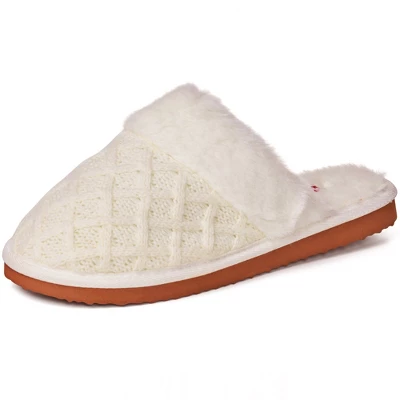 - SMART DESIGN – The Grace slippers feature a classic scuff heel design with a closed toe to keep your foot secure. The slippers are lined with soft plush faux fur to keep your feet warm while the cable knit upper is breathable so your feet don’t sweat.
