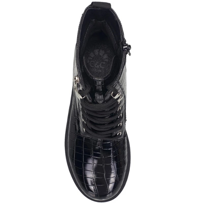 Introducing the Janet Booties from C&C California. These stylish booties are made from vegan leather, and feature a lace-up style with a side zip. They’re the perfect addition to your wardrobe, and will look great with jeans or leggings. The heel height is 1.5″, and they have a lug sole for added traction and durability. Whether you’re headed to the office or out for a night on the town, these booties will keep you looking your best. Order yours today!