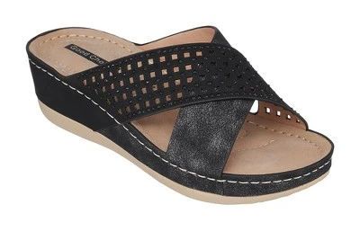 Make a fashion statement this summer with the Isabella slip-on platform sandal from GC Shoes. With its laser-cut perforations and rhinestone accents, this sandal exudes modern style and sophistication. The cushioned footbed provides exceptional comfort, making it the perfect choice for any occasion. Flaunt your chic looks with the Isabella platform sandal.