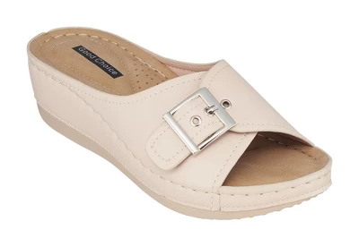 GC Shoes Justina Buckle Comfort Slide Wedge Sandals