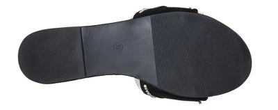 Stay fashion-forward with the GC Shoes Rihanna sandal, keeping your style on point. Featuring a rounded toe and a padded insole, this slip-on sandal boasts a luxurious suede band upper. The rhinestone-embellished knot detail adds a captivating touch, elevating the overall appeal and interest of this trendy footwear.