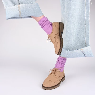 Introducing Claudiya by Journee Collection, the wingtip oxford flat that combines classic charm with vintage style. Made from vegan leather and featuring an almond-toe design with a chunky lug sole, Claudiya showcases a preppy and ivy league look that’s perfect for any occasion. With a lace-up style and 4 mm Tru Comfort Foam™ insole, Claudiya ensures a comfortable fit all day long, making it an essential addition to your shoe collection.