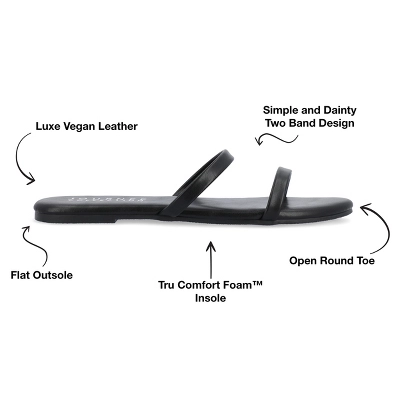 Our Adyrae sandals from Journee Collection will be the star of the show for any occasion. Their luxe vegan leather, slip-on closure, and round-toe shape will complete the look you’re going for while adding a cute extra touch with their multi-strap. To keep your feet happy, their 4 mm Tru Comfort Foamâ„¢ will leave your feet more comfortable than ever.