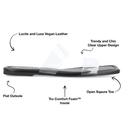 Our Amata sandals from Journee Collection will leave you feeling like the queen you are. With their lucite material, multi-strap design, slip-on closure, slide feature, and open round toe, it’ll give you all the style you need to match any and all of your outfits, letting you wear them time and time again. As a bonus, their 4 mm Tru Comfort Foamâ„¢ insole will leave your feet feeling like they’re on a cloud with every step.