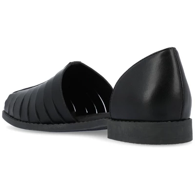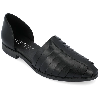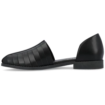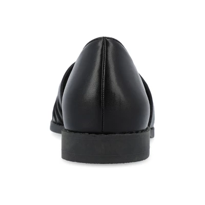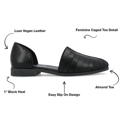 Our Anyah block heel flats from Journee Collection will have you walking out of your house with a boost of confidence. Leaving your shoes complimenting your outfit with their padded insole, luxe vegan leather, ankle cuff design, caged detail, and almond toe shape. The slip-on closure will leave your outfit keeping that glow without any straps getting in the way.