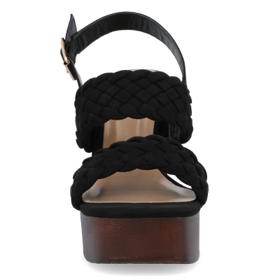 Our Ayvee sandals from Journee Collection will leave you walking around in all the style and comfort you could ever dream of. With their 4 mm Tru Comfort Foamâ„¢ insole, supple vegan leather, braided strap detail, and faux wood wedge heel, this style is sure to become a favorite. Their ankle strap, buckle closure, and open toe will make for the perfect finishing touch for a fancy yet casual look for any occasion.