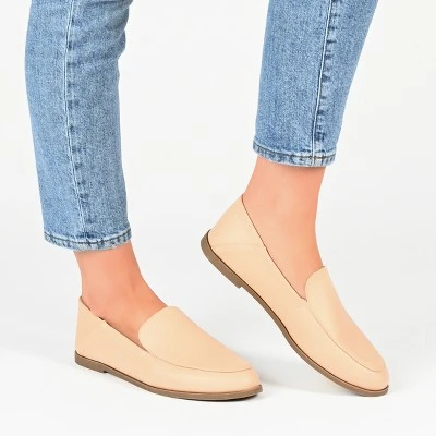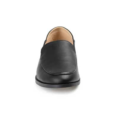 Elevate your shoe collection with the Corinne loafers by Journee Collection. These classics are designed with twin notches and an almond-shaped toe, adding an element of sophistication to your style. The soft vegan leather material, crash back, wide-width footbed, and 4 mm Tru Comfort Foamâ„¢ insole complete the look and promise exceptional comfort.