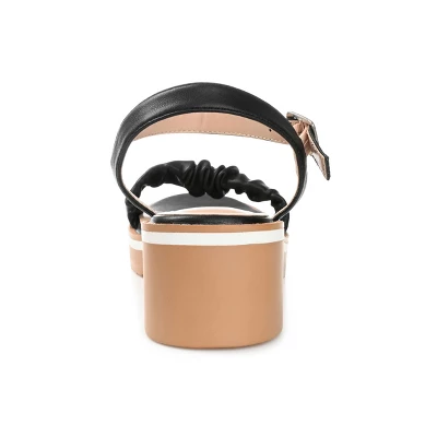 Indulge in something sweet this summer with the Dexxla by Journee Collection. This vegan leather strappy heel features ruching at the vamp and straps around each ankle for a foot-framing fit. A padded insole and a lightweight block heel finish the design for all-day comfort. At Journee Collection, our pump styles will let you go from a fun night out with the girls to kicking back and relaxing at the end of the night without any trouble.