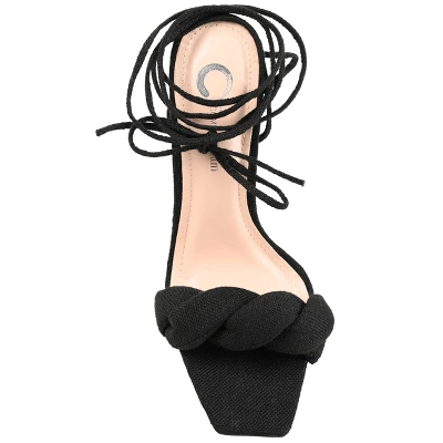 Wrap up your favorite outfits with the Edelie by Journee Collection. This irresistible style features a braided band at the toe complemented by a slender wraparound strap at the ankle. Linnen fabric uppers and a 5 mm Tru Comfort Foamâ„¢ insole shape the look for extra comfort. At Journee Collection, our pump styles will let you go from a fun night out with the girls to kicking back and relaxing at the end of the night without any trouble.