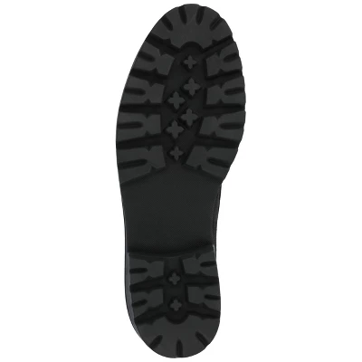 The Erika loafer by Journee Collection is a timeless classic shoe with a cool twist. It has an almond-shaped toe and chunky lug sole that will make you stand out. The soft vegan leather uppers with moc-toe detail make the shoe look great, while the 4 mm Tru Comfort Foamâ„¢ insole and roomy wide-width footbed provide the comfort your feet need. This shoe is perfect for any outfit, and you’ll be looking stylish and feeling comfortable all day long.