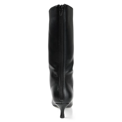 Stride in style with the Esperanza boot by Journee Collection. This sleek mid-calf silhouette features a notch at the topline, vegan leather, and a zipper up the back for easy entry. With the 4 mm Tru Comfort Foamâ„¢ footbed and low heel, you’ll look and feel your best in this style. At Journee Collection, our boot styles will have your outfit looking even better than before. They will give you that finishing touch that will have your outfit looking straight out of a magazine.