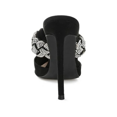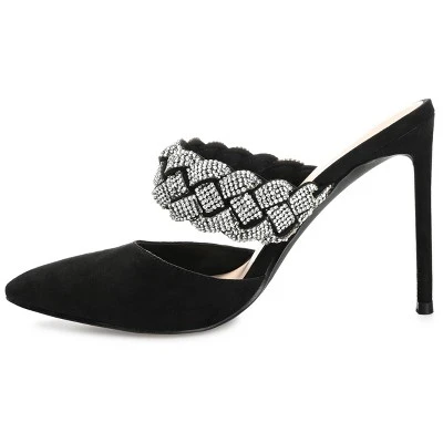In the Hazzl heels by Journee Collection, your certain to be the belle of the ball. The soft vegan leather and 4 mm Tru Comfort Foamâ„¢ insole on this pointed-toe heel will keep you on your feet no matter how late the party goes. A braided band with rhinestone details crowns the design for a glam finish. At Journee Collection, our pump styles will let you go from a fun night out with the girls to kicking back and relaxing at the end of the night without any trouble.
