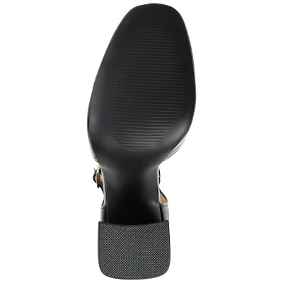 Indulge in vintage fashion with the Hesster heels by Journee Collection – a darling d’Orsay featuring a covered block heel and wide-width footbed with a padded insole for a comfortable lift. The Hesster also includes a glossy patent vegan leather, slim ankle strap, and soft square toe for a sophisticated finish. This exquisite shoe is a must-have accessory in your wardrobe.