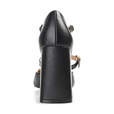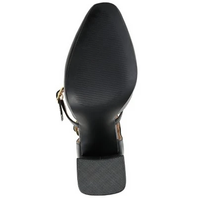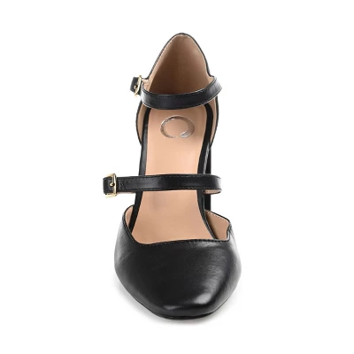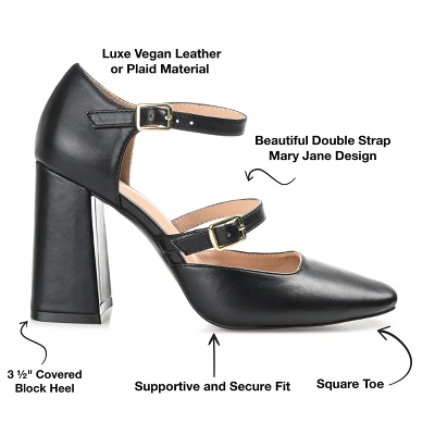 The Isadorah pump by Journee Collection will instantly add a vintage twist to your shoe collection. This modern version of the classic Mary Jane heel features twin buckle straps and vegan leather or plaid fabric uppers. A covered block heel and retro square-toe complete the midcentury style, perfect for any occasion. With a wide-width footbed and padded insole, this style is sure to fit well.