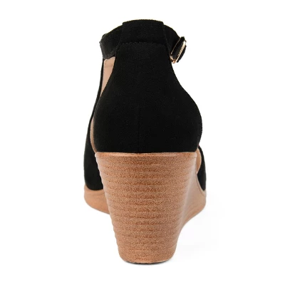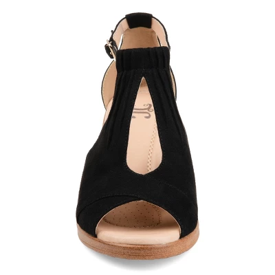 Looking for a cute and comfortable shoe to wear during the warm weather season? The Kedzie by Journee Collection is perfect for you. This peep-toe silhouette rises to the ankle, featuring a keyhole detail that adds a touch of style. Made with velvety vegan suede, a 4 mm Tru Comfort Foamâ„¢ insole, and a narrow-width footbed, the Kedzie offers a comfortable fit that’s perfect for all-day wear. Add the Kedzie to your shoe collection and enjoy this light warm-weather look on repeat.