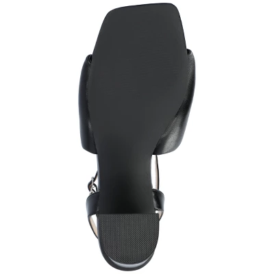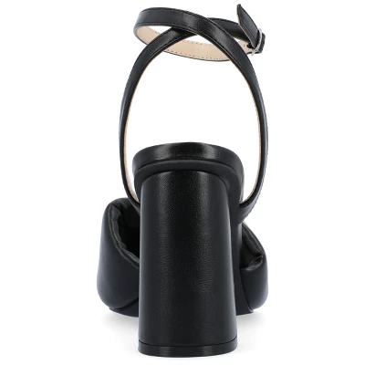 Our Lottey pumps from Journee Collection are the perfect shoe for when you want a night out but still want to keep comfortable. With their 4 mm Tru Comfort Foamâ„¢ insole, luxe vegan leather, covered block heel, and bow detail, these classic heels offer ease and style. They have an ankle strap and buckle detail to give you a little security.