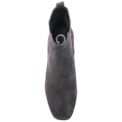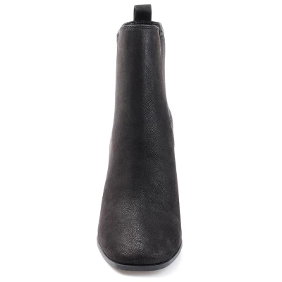 In the Maxxie bootie by Journee Collection, the outfit possibilities are endless. These booties feature vegan leather uppers that rise to the ankles and highlight a square-toe detail. Flexible stretch gore makes them easy to pull on, and a 4 mm Tru Comfort Foam™ insole makes them super comfortable. At Journee Collection, our booties will give you that comfortable yet stylish look, perfect for when you’re in the office all the way to a fun night out with the girls.