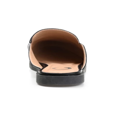The ultimate easy mule flat is here the Rubee by Journee Collection. Embossed vegan leather and a padded insole offer all-day comfort. A hardware accent at the vamp and a round-toe finish this versatile design. At Journee Collection our flat styles will have you looking just as professional as the boss at work to having the cutest shoes when you go out for the night.