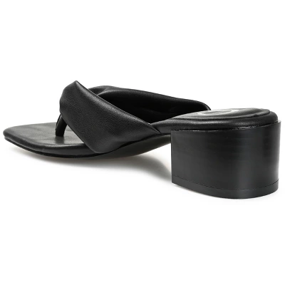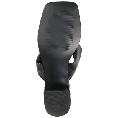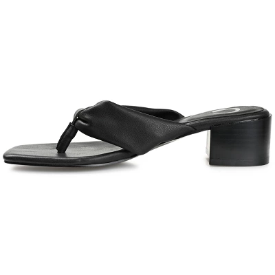 A cool take on the flip-flop the Seelah by Journee Collection. This ultra-sleek sandal is shaped with soft vegan leather uppers lined with a padded footbed. An open square-toe and a stacked block heel finish the look. At Journee Collection our sandal styles are going to be perfect for any occasion. Whether that be a formal business or casual dress these sandals will be a perfect match.