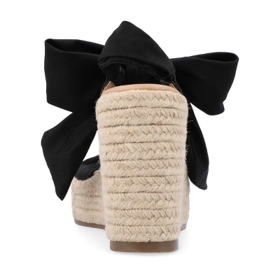 The Surria wedge-heeled sandal from Journee Collection will take you anywhere you want to go without the fear of wearing the wrong shoe. Their soft lycra material multi-pattern espadrille ankle wrap twist strap design and open square toe will be the star of the show grabbing the attention of others. As a bonus their tie-up closure and 4 mm Tru Comfort Foam� insole will keep your feet comfortable for any errands you might need to run.