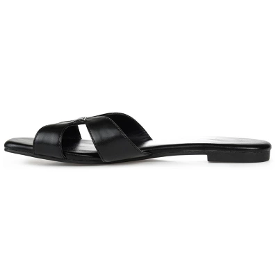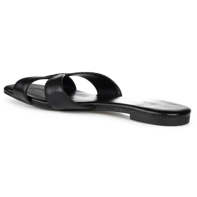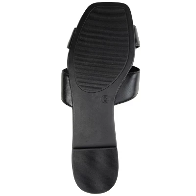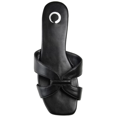 The Taleesa by Journee Collection looks like the makings of a perfect summer day! This slide-on sandal features a squared open-toe for a contemporary look. Keyhole details at the vamp, soft vegan leather, and a padded footbed complete the design. At Journee Collection, our sandal styles are going to be perfect for any occasion. Whether that be a formal, business, or casual dress, these sandals will be a perfect match.