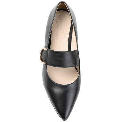A classically chic look borrowed from the roaring 20s the Emerence by Journee Signature. This pointed-toe Mary Jane flat features the softest 4 mm Tru Comfort Foam� footbed and genuine leather for long-lasting comfort. A thick strap with a hardware detail tops this vintage look.