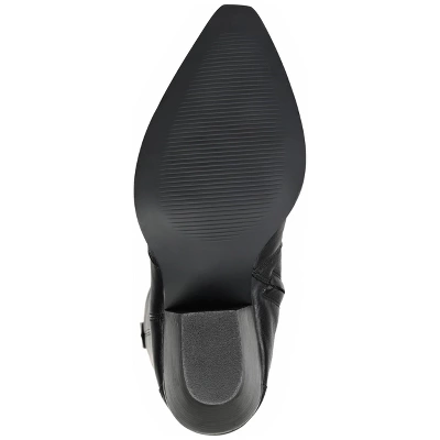 A style from the old west makes a comeback with the Pryse by Journee Signature. This genuine leather western boot features a wide-calf and a 4 mm Tru Comfort Foamâ„¢ footbed for a comfortable fit. A low stacked heel and cowgirl-inspired stitch details finish the design.