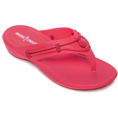 A classic Minnetonka summer style comes in a rainbow of colors that will bring a smile to your face every time you look at your feet. This fully molded EVA sandal is water-friendly and extremely lightweight, sure to keep you light on your feet all day with supreme comfort.