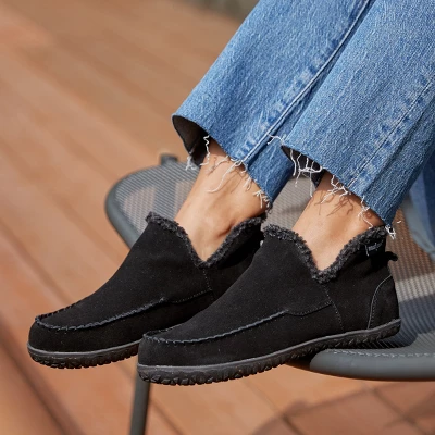 Easy on all-weather shoes to wear here, there and everywhere. Adventure ready with a comfortable, cushioned footbed and an indoor or outdoor sole. Soft berber lining and a soft suede upper make these shoes perfect for whatever the day may bring, without sacrificing style.
