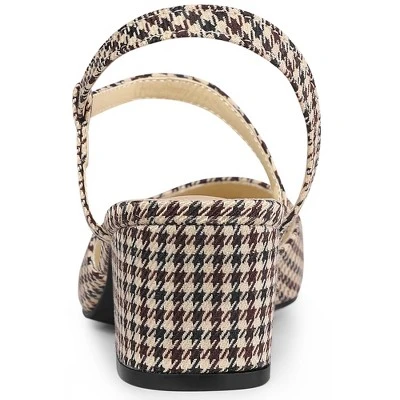 Perphy Houndstooth Printed Pointed Toe Slingback Chunky Heels Mules For Women