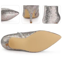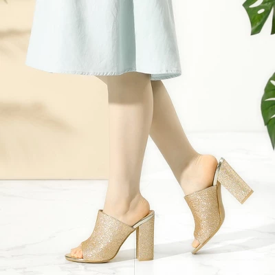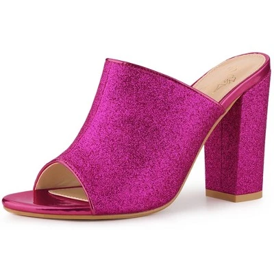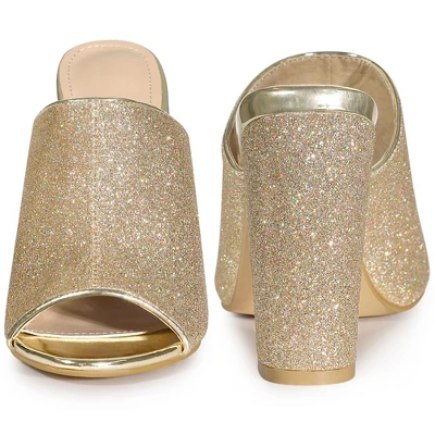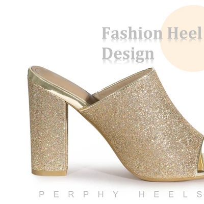 Perphy Women’s Glitter Slip-on Chunky Heels Mule Sandal