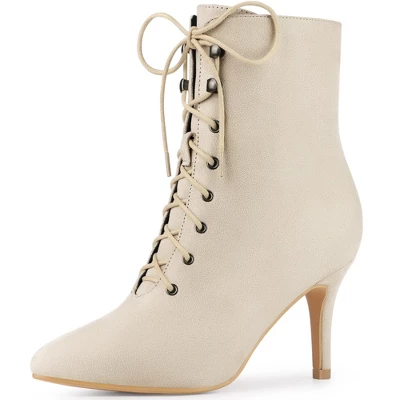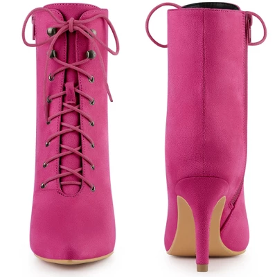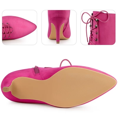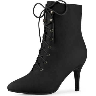 - Pointed Toe, Lace Up, Stiletto Heels, Ankle Booties