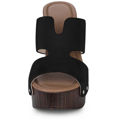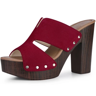 - Slip-On, Block Heel, Platform, Peep Toe, Faux Suede