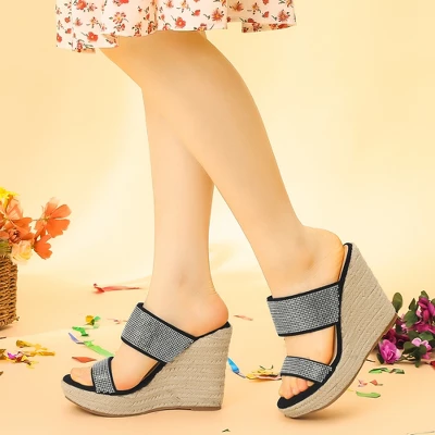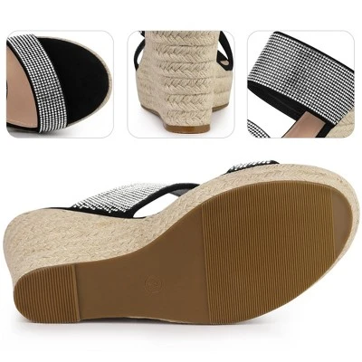 - FEATURES: Bling rhinestone; wedge heels; slip-on closure; slide espadrilles sandals; platform design; lightly padded; classic wedge sandals